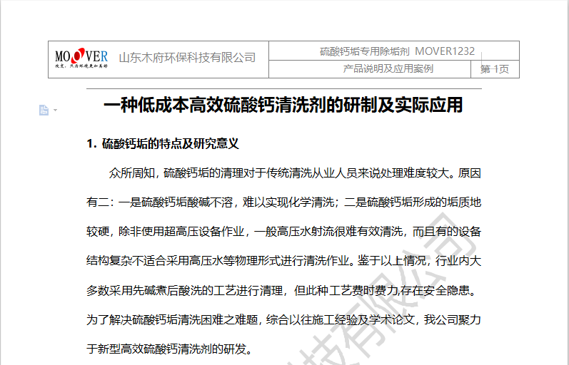 一種低成本高效硫酸鈣清洗劑的研制及實際應(yīng)用