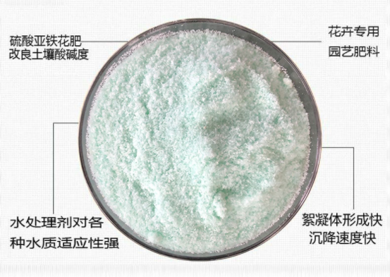硫酸亞鐵俗稱綠礬,形成絮凝體快而穩(wěn)定,沉淀時間短,適用于堿度高、濁度大的情況,但色度不易除凈,腐蝕性也較強。